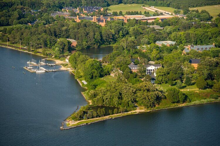 Situated directly on the St. Mary’s River in the town of St. Mary’s in southern Maryland, you’d be hard pressed to find a more serene setting for a small college. It’s absolutely beautiful, and the campus and buildings are all meticulously maintained. Curb appeal certainly isn’t the issue. I mean, just look at this place.