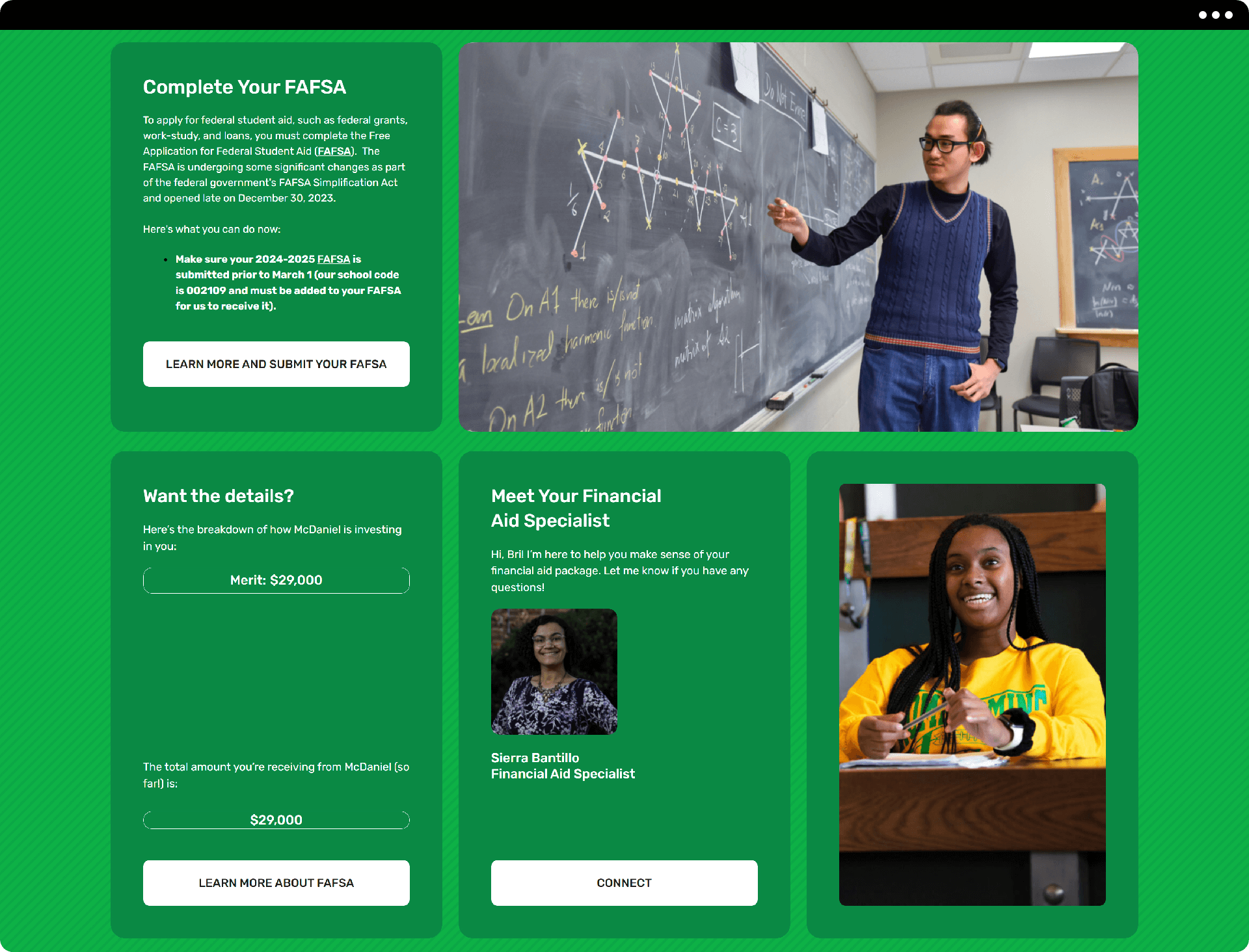 - Ensure your student application and admit portals call out FAFSA reminders for those who haven’t filed.